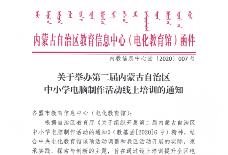 3月26日,由内蒙古自治区教育信息中心举办的“第二届内蒙古自治区中小学电脑制作活动”线上培训以网络直播的形式圆满完成,600余名内蒙地区的一线骨干教师参与了此次活动。