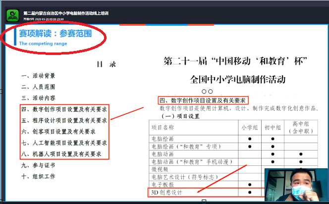 IME3D资深培训老师——周老师对数字创作项目 · 3D创意设计进行了深度解读,内容包括参赛范围、主题和作品要求、赛项流程等。