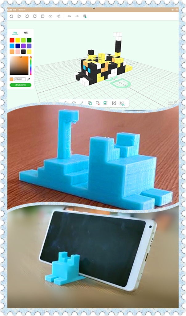 3D积木这款软件,夸张一点说,这是一款“不用学”就会玩的数字设计工具。利用积木 “堆”出一个手机支架,这对于喜爱积木的孩子来说,操作简单又有趣。