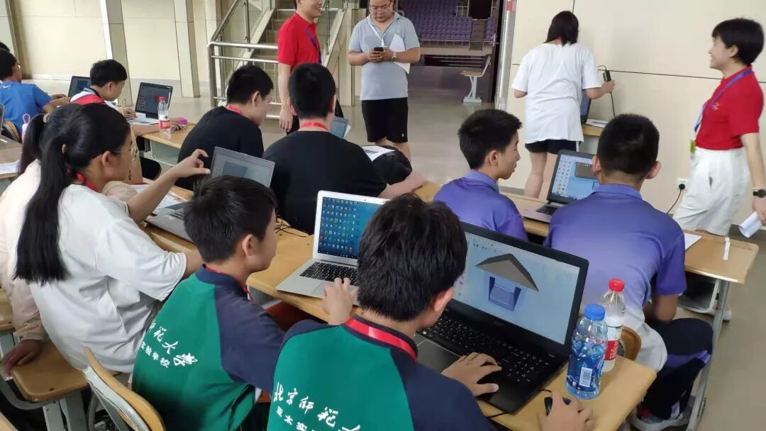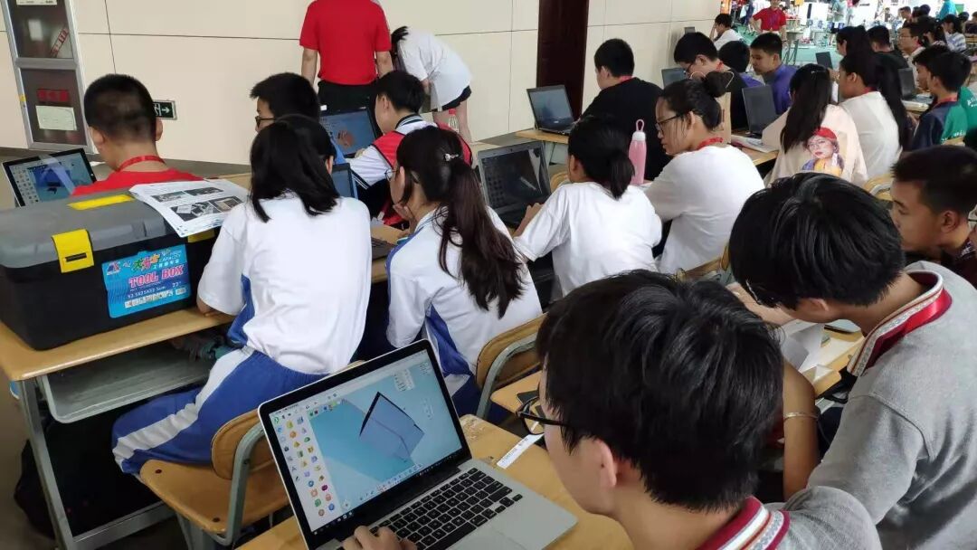 23日早上,骤雨的无序也无法打乱赛场上选手们的节奏。选手们根据现场公布的决赛技能操作命题,进入90分钟紧张而高效的设计环节,使用同一个工具(IME3D青少年创新教育平台)去创造独属的创意作品。