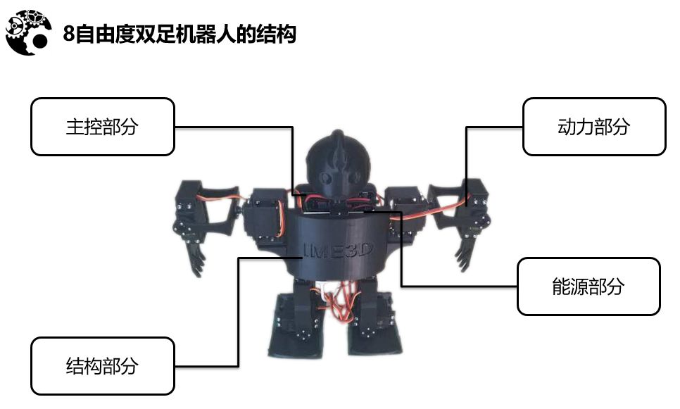 双足机器人主要运动部分为脚部、腿部、肩部、手部关节,关节个数越多,可执行动作越复杂。