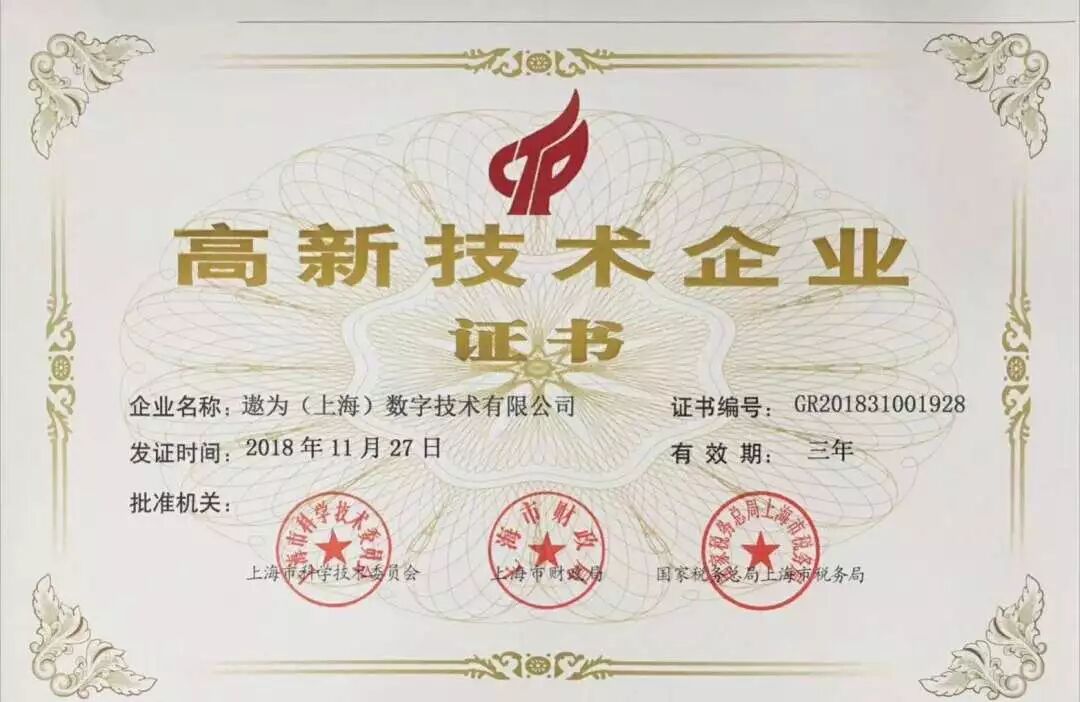 恭喜遨为(上海)数字技术有限公司荣获“高新技术企业证书”,更上一层楼!在青少年3D打印创新教育这条路上,遨为数字不忘初心,致力于将更好的教育产品带给广大的的师生群体。