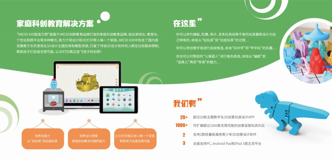 全面优化升级的IME3D创新教育平台以及全新推出的IME3D KID家庭科创教育平台,让3D打印真正放飞孩子的创想!